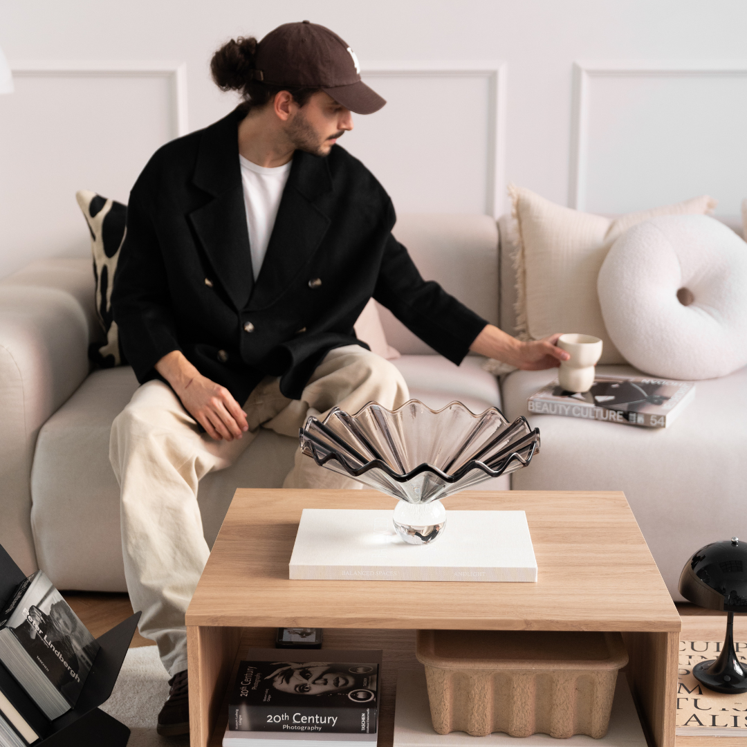 The Ballerina collection now features a stunning centerpiece, offering a sculptural touch to your home. 🖤 Designed by Kevin Schertl, the limited-edition smoke color brings a refined elegance to any space.