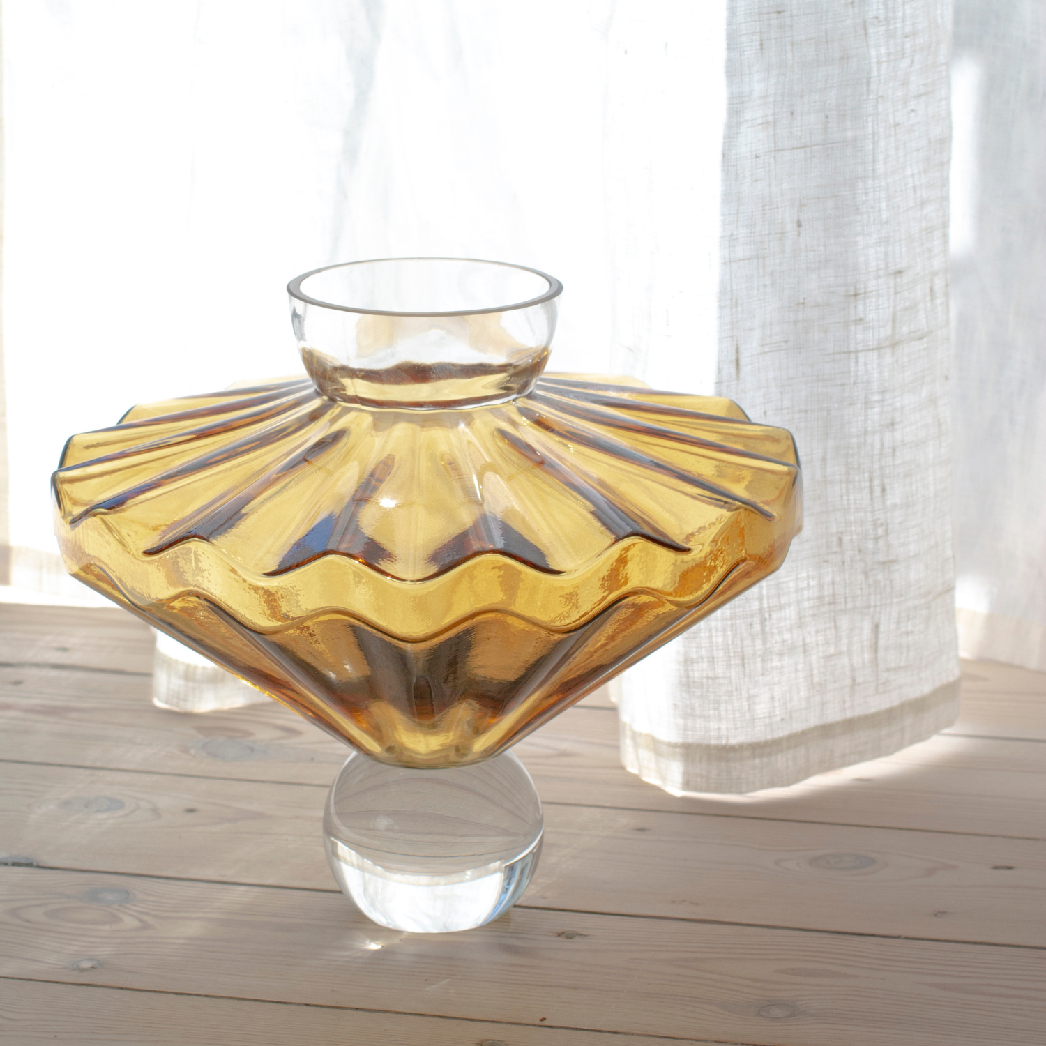 - Material: Base: Crystal, Skirt: Mouth-blown glass