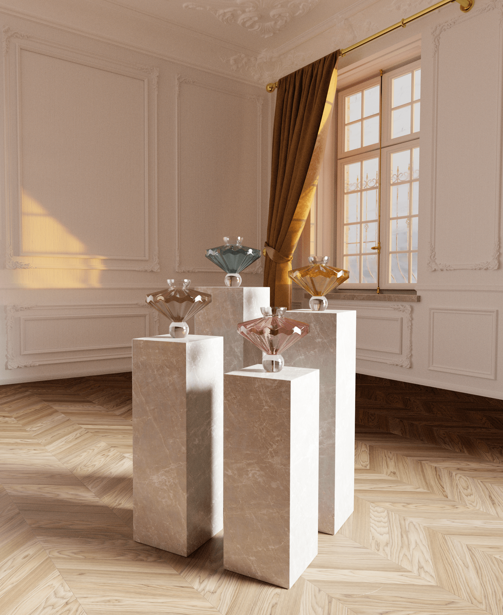 - Material: Base: Crystal, Skirt: Mouth-blown glass